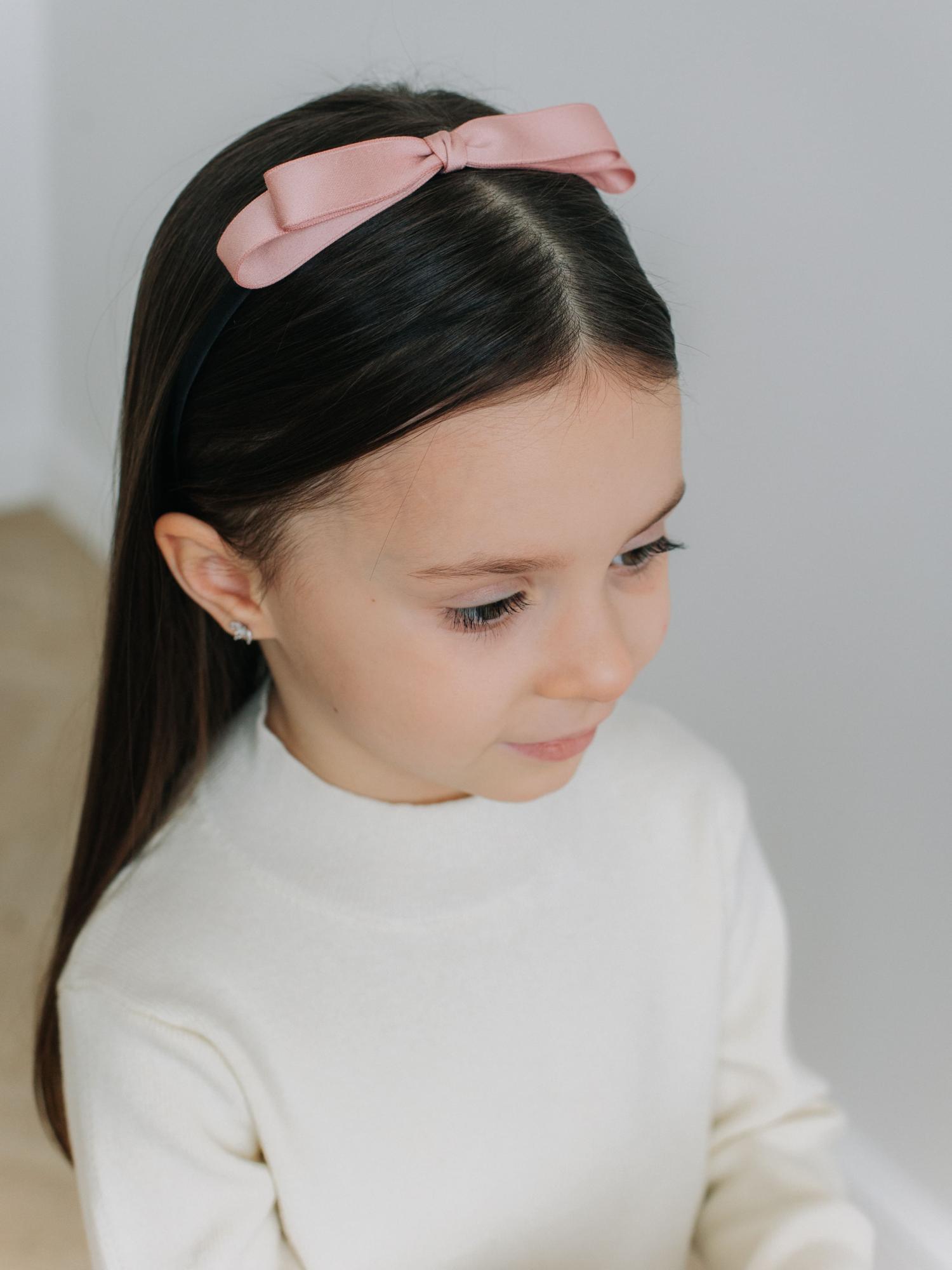 Ободок с атласным бантиком, Пудровый